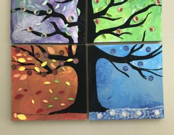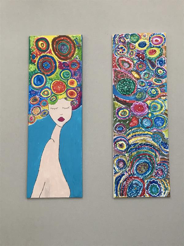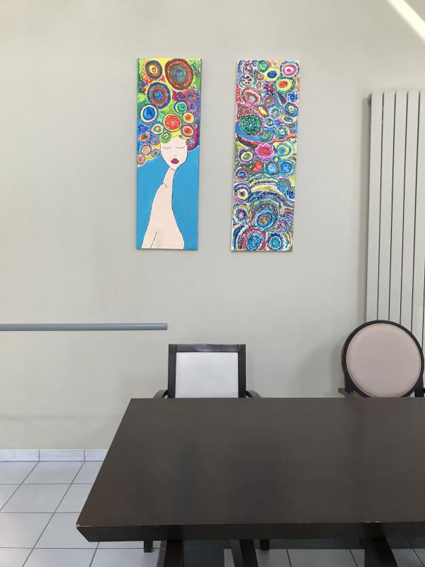 Les tableaux terminés, les résidents des jardins de Roinville étaient tellement fiers d'eux, qu'ils ont demandés à ce qu'ils soient exposés dans le hall d'accueil..