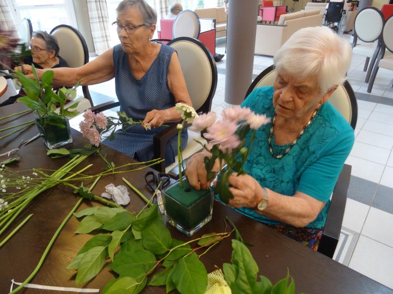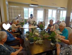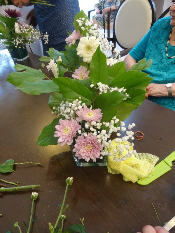 Les Jardins de Roinville > Actualités > Atelier floral Atelier floral Publiée le 21/08/2020 Afin de garnir les tables du grand salon de la résidence, un atelier floral a été réalisé pour le grand plaisir de tous !