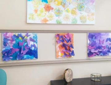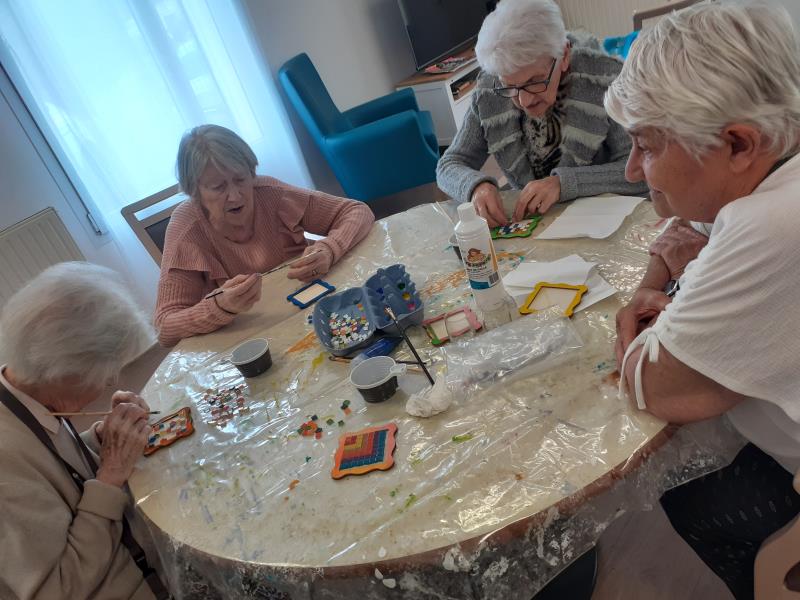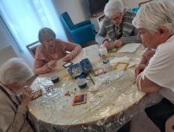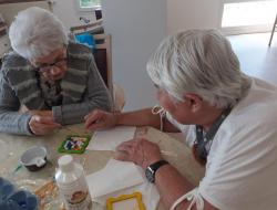 Travail des praxies en équipe, tout en détail et finesse pour un rendu esthétique et pratique pour nos futurs dessous de verres.