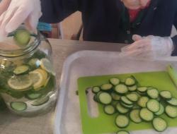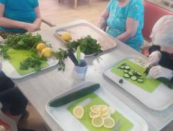 A l'unité protégée, l'objectif était de retrouver les gestes du quotidien (couper des légumes, éplucher) afin de proposer une boisson rafraîchissante pour le goûter.