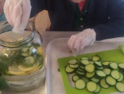 Avec les fortes chaleurs du début de semaine, l'animatrice Julie a proposé différents ateliers création d' "eaux aromatisées" aux résidents.