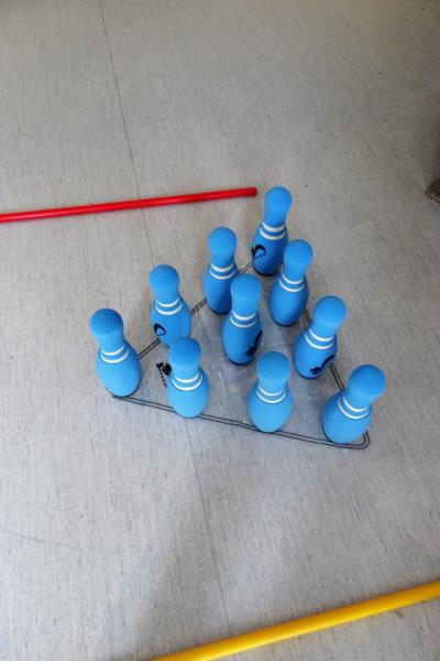 Cet après-midi, nous avons inauguré notre nouveau jeu de bowling, spécialement conçu pour l'interieur.