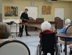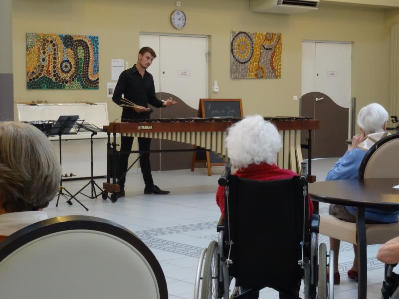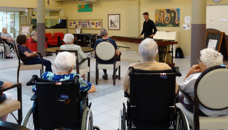 Jeudi 16 juillet, nous avons eu le plaisir de découvrir le marimba, un instrument à percussion, joué par Tristan, un concertiste de l'association des Concert de Poche.