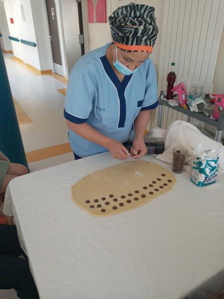 Ce dimanche, les soignantes de l'unité protégée des Jardins de Roinville ont proposé un atelier pâtisserie aux résidents, avec au programme la confection d'une brioche au chocolat.