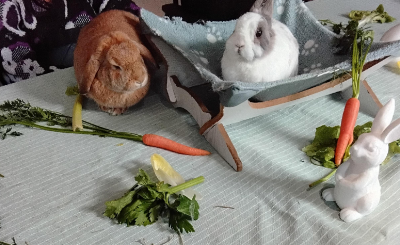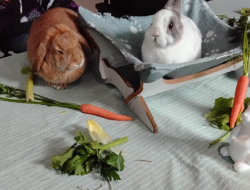 Cette semaine, c'est Pom et Kaline, deux lapins nains, qui sont venus. Au programme : nourrissage, brossage, câlins et petit quizz..