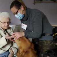 Publiée le 19/03/2021Aujourd'hui lors de la séance de zoothérapie, Melda et Lexie étaient accompagnées d'un invité: Mitsu le Golden retriever. Au programme de cette séance : Brossage par nos résidentes, très attentionnées! Nous avons hâte de les retrouver, prochain rendez-vous le 2 Avril! Lire la suite