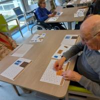 Publiée le 03/02/2023A l'atelier de cette semaine les résidents ont manipulé du nouveau matériel pour faire marcher la mémoire de travail (mémoire à court terme). En binôme, un résident plaçait un certain nombre de petits objets sur une feuille représentant le fond d'une pièce de maison, puis il l [...] Lire la suite