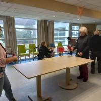 Publiée le 20/01/2023Les résidents ont assisté à leur premier cours de tennis de table de l'année. Ils étaient accompagnés par Yvan, le prof, et Julie G, la psychomotricienne. Je profite de cet atelier pour vous faire partager un article qui fait la promotion de ce type d'atelier en EHPAD et plus précisement, chez les perso [...] Lire la suite