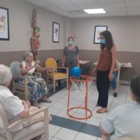 Publiée le 20/07/2022Les psychomotriciennes de la résidence ont proposé un nouvel atelier basket, dans leur projet : Initiation aux sports adaptés. Après un échauffement musculaire, quelques exercices de passes avec le ballon, les résidentes ont testé le nouveau panier de basket. Lire la suite