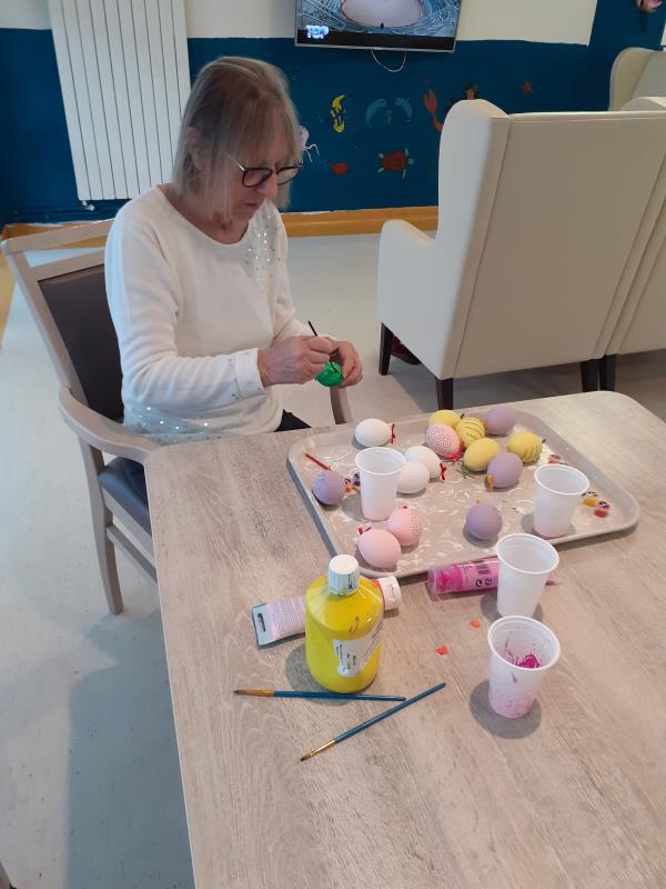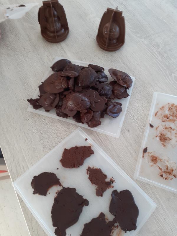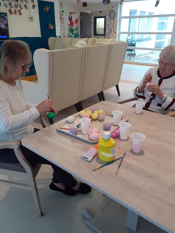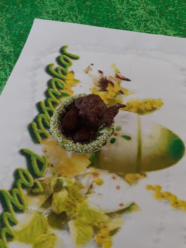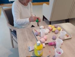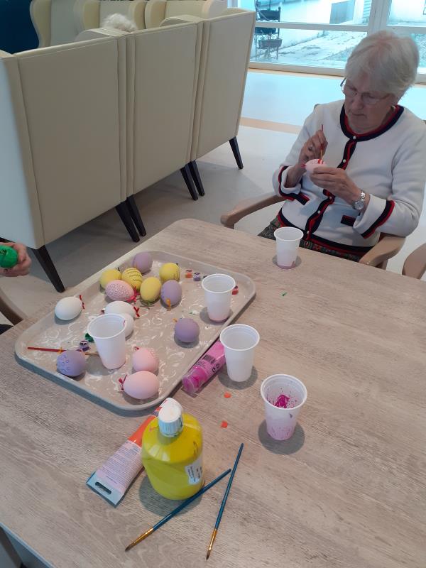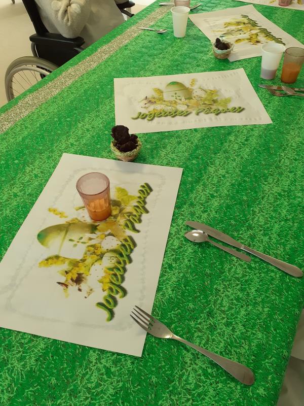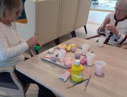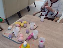 Nos résidents de l'unité protégée ont assurée, avec l'aide des soignantes, la décoration pour le repas du lundi de Paques, mais aussi la confection des chocolats.