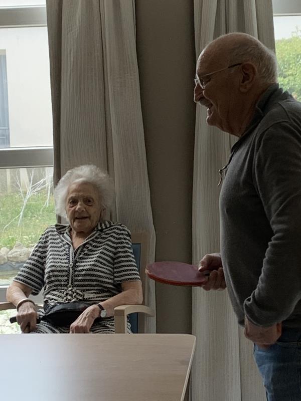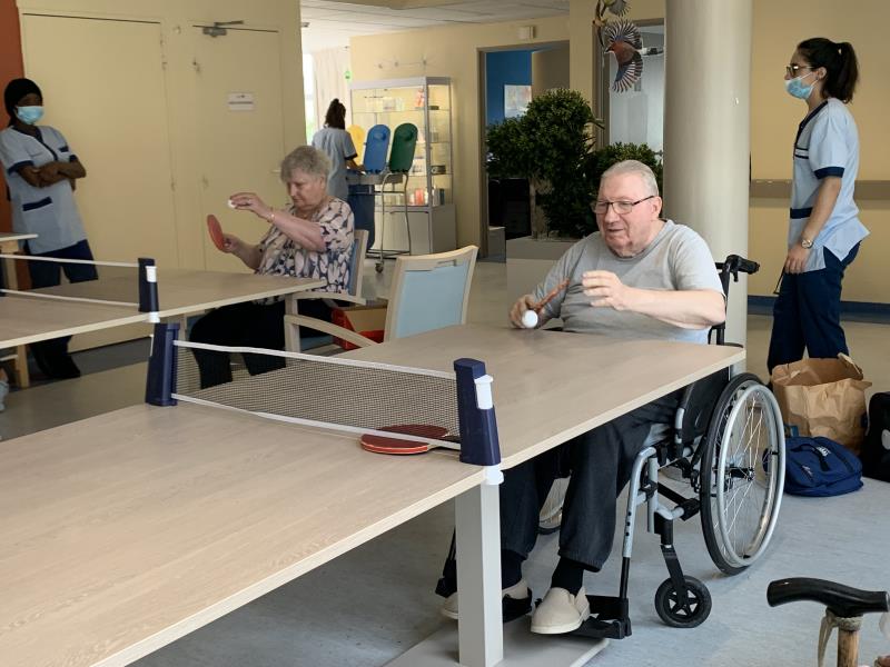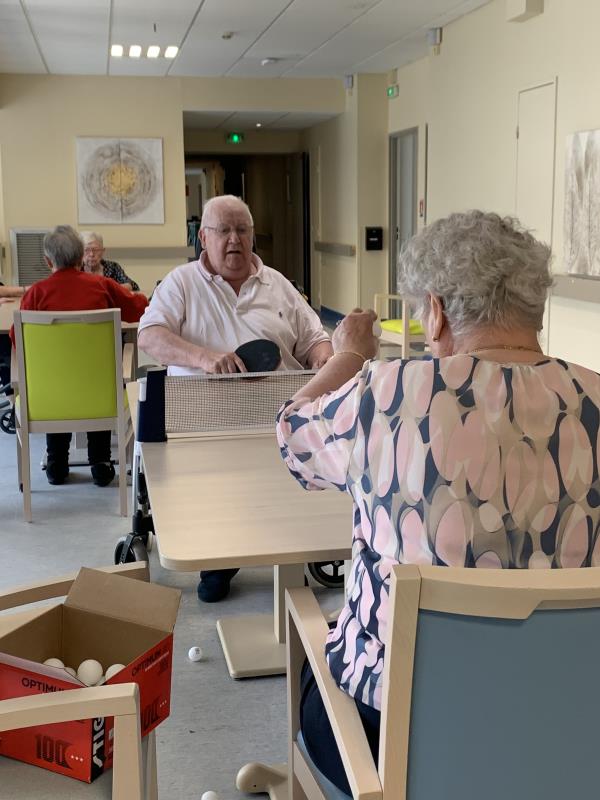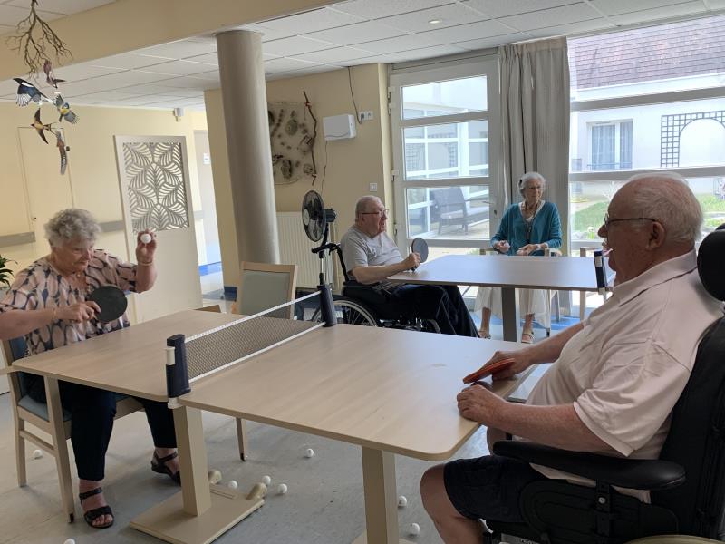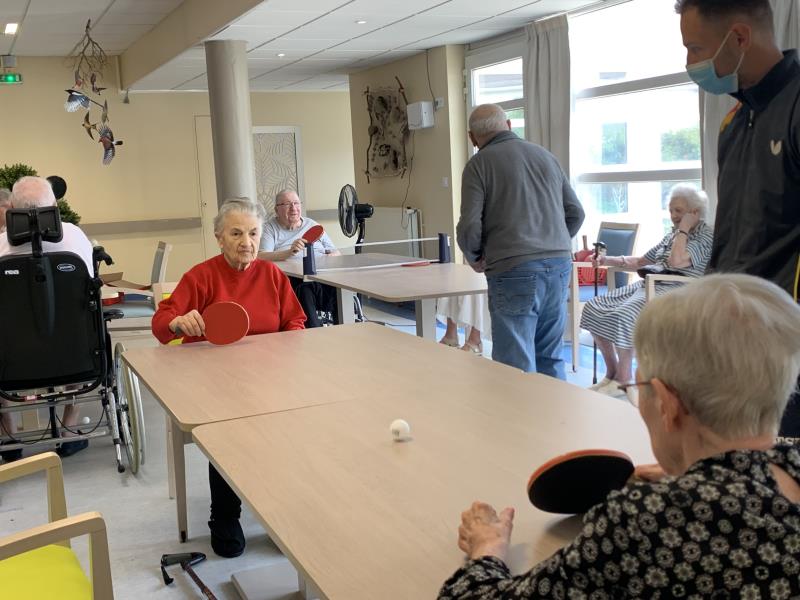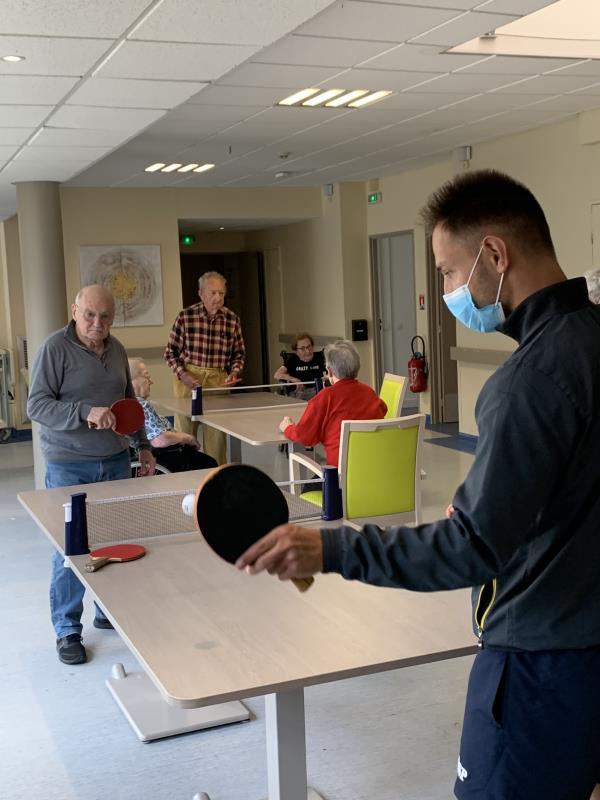 Nouvel atelier tennis de table, ce jour, pour les résidents des Jardins de Roinville.