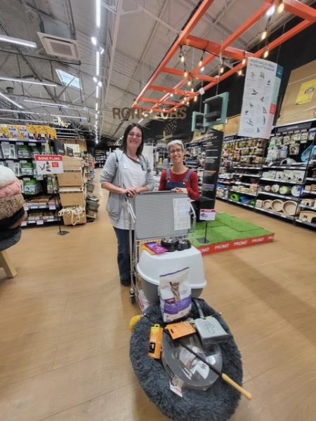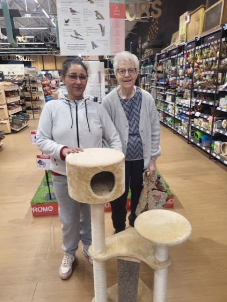 Nous avons réalisé des achats pour préparer l’arrivée d’un chat à la résidence, en partenariat avec l’association Carra-Pattes. Une de nos résidentes, qui adore également les chats, nous a accompagnés dans cette belle préparation.
