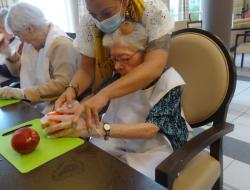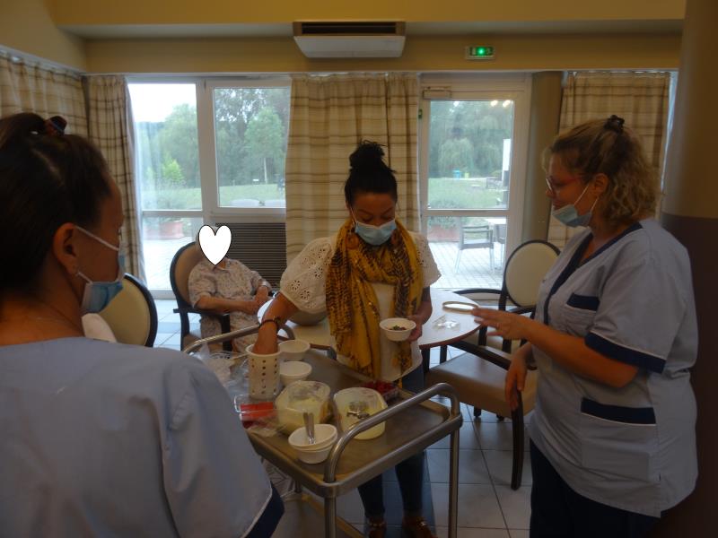 Un moment de plaisir et de partage entre résidents et personnels soignants.
