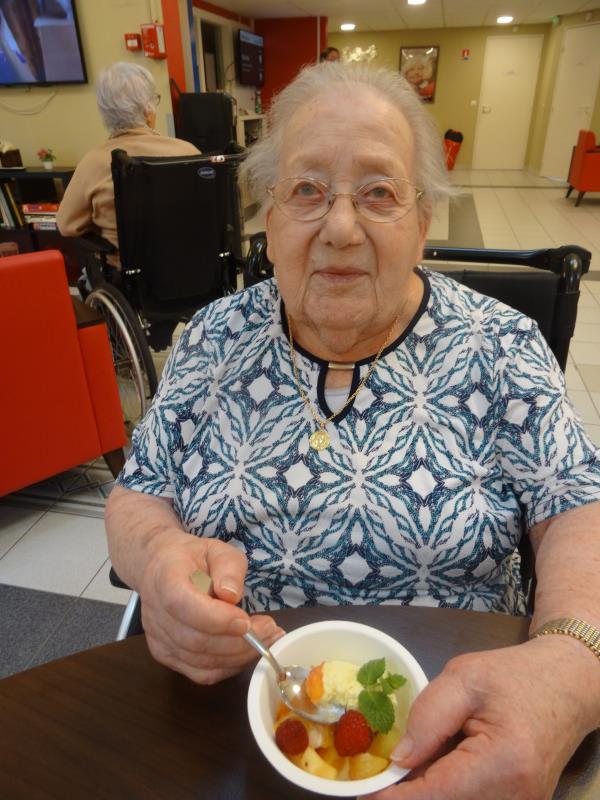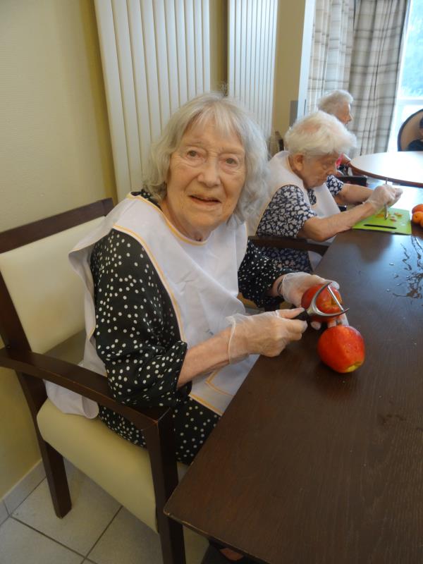 Ce mercredi, Tânia et les résidents ont préparé une salade avec les fruits de saison, qui a été servi lors du goûter.