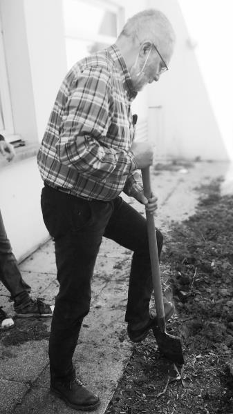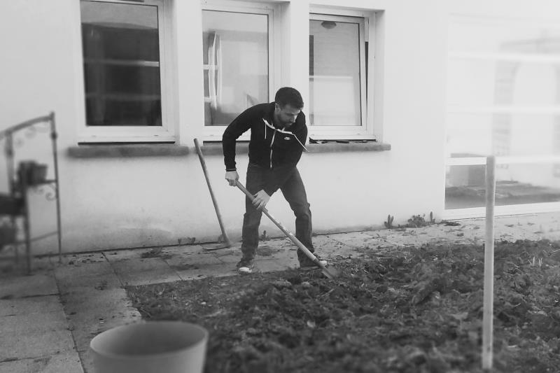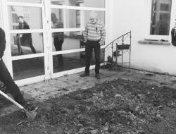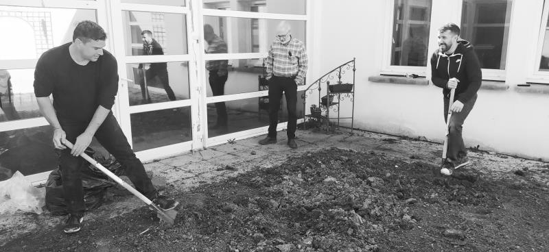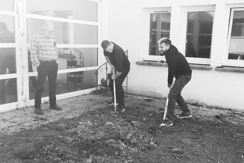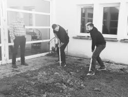 Des ouvriers (un peu) particuliers ont mis la mains à la pâte ce matin pour remettre à neuf de patio de l'unité protégée! Pioché, bêché, ratissé.... Le terre-plein a été aplani afin d'y installer un nouveau gazon et de nouvelles jardinières. Nos résidents profiteront bientôt d'un nouvel espace détente en extérieur.