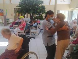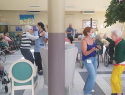 Un accordéoniste est venu pour mettre l'ambiance aux Jardins de Roinville, pour le plus grand plaisir des résidents qui se sont permis quelques pas de danse..